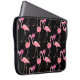 Two pink flamingos on a black background. Seamless Laptop Sleeve