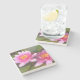 YOU WILL FIND YOURSELF WANTING TO USE THESE PRETTY STONE COASTERS OFTEN. THEY COME IN A CHOICE OF 4 STONES (SHOWN HERE IN MARBLE) AND ARE CORK-BACKED. TWO LOVELY PINK LOTUS BLOSSOMS AMONG LILY PADS ARE FEATURED IN THIS DESIGN. GREAT HOSTESS GIFT OR ADULT STOCKING STUFFER IDEA OR GIVE TO YOUR YOGA ENTHUSIAST FRIENDS.