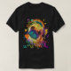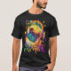 I give wanted to give this a 4 instead of a 5 because these Basic DARK T0shirts run unexpectedly SLIM or Narrow. Which is great if you do not have a potbelly, but I have a paunch. It isn't the shirt's fault that I've got a beer belly. The design and shirt itself is a quality cotton shirt. The color is more of a deep purple, but still a very pretty color. The Basic DARK T-shirts run a bit SLIMMER than the Basic Ts. The neck is a fraction narrower (or seems to be narrower) also. I'm a paunchy middle-aged woman and my neck is 12 inches (31cm) thick and the neckline fell about the same as in the photo of the man, and I had the desire to tug it a bit. So if you're a thick necked man or like loose shirts, be aware these are slimmer shirts. Once I get rid of my lockdown paunch it'll look great. The shirt washed well in cold water with no apparent bleeding. We don't have a dryer, so it hung dry. Did not shrink. Love the colors and the design. The design looks smaller on my shirt than it does on the model on-line. But still, it looks good on the shirt. The printing looks as it does on the model, just the size seems fractionally smaller. Washed garment in cold water, hung dry and design appeared unaffected.