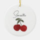 Two Red Cherries Illustration | Cute Fruit Art Ceramic Tree Decoration