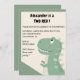 Imagine a sleek light green cover, offering a sneak peek into the vibrant celebration within. 🌿🦕 Featuring a big cute light green T-Rex at the centre, set against a beige background with a light green frame and the text "X is a two rex" on top, these invitations embody the spirit of a 2nd birthday dinosaur theme. The colours radiate the excitement that awaits your little dino enthusiast.