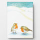 Two Robin redbreasts in Winter. Robins can withstand very cold winter temperatures. - Book illustration for a children's book 'The Redbreast' (Written and illustrated by Julia Doria). This is a story about the Robin Birds in winter and a friendship. It’s been said that robins are a harbinger of spring.