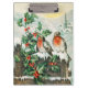 Two robins on a fence in the snow clipboard