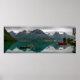 Poster print of a landscape with two old rowboats in a lake with the reflection of the mountains in the still water at Hjelle Hotel, Hjelle, Stryn, Sogn og Fjordane, Norway. It is a panorama photo, perfect to decorate your wall.