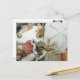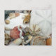 Sea shell photography postcard. Pictures of pretty seashells such as the sea biscuit sand dollar, sundial, sea urchin, pink and orange cockle shells, curly worm snails, and other marine life cover the front. Reverse is blank to use for any occasion, or send from a tropical beach vacation.