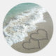 Two Sand Hearts on the Beach, Romantic Ocean Classic Round Sticker