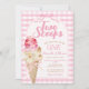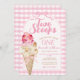 Pink Bow Two scoops are better than one Birthday Ice Cream Gingham Invitation