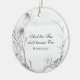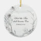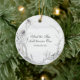 Inspirational quote scripture customised wedding Christmas ornament depicts simple watercolor flowers and foliage in muted shades of grey. It features Bible Verse Ephesians 5:31, "And the two shall become one." Personalise the back with names and date or the details of your choice.