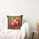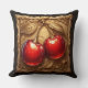 Two Shiny Red Cherries with Golden Leaves Cushion