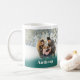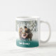 Add your own photos to create a special personalised gift. This mug can be customised with two photos. There's a spot to add one on the left side and another on the right. Below each photo is a spot to add your own text in bold antique ivory white lettering against a dark teal overlay.