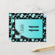 This double-sided aqua blue, white and black polka dot table number postcard with FAUX ribbon and jewels matches the Bat Mitzvah invitation shown below. **You must change the number 11 to each of the table numbers you need, add it to your cart, and then return and repeat the process until you have all the individually numbered cards that you need in your cart. Stand it on a small easel, or in your centerpieces. If you need assistance, email niteowlstudio@gmail.com.
