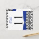 Two-sided Black, White, Blue Damask Table Number Postcard