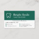 Keep patients on schedule with this two sided dental visit appointment reminder business card. The front side features your practice name, logo, and contact details, while the reverse includes dedicated spaces for writing appointment date, time, and notes. Perfect for dentists, hygienists, orthodontists, and dental clinics, this clear and practical double sided design reduces missed visits while reinforcing your practice’s professional image.