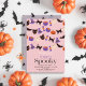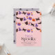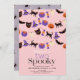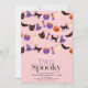 This cute "spooky one" halloween girl's 2nd/second birthday invitation features a pink background with Halloween motif garlands including a black cat, bat, ghost, pumpkin, candy, witch hat, and cauldron. The reverse side features a purple background with spider web patterns. Personalise it for your needs. You can find matching products at my store.