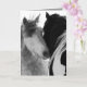 Two wild stallions, Indigo and Washakie, come close to each other in the McCullough Peaks Herd Area in Wyoming. There is an additional image of the horses inside the card. All images are by Carol Walker.