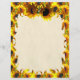 Two bright yellow sunflowers. Floral photography, taken spring 2009 in Corralitos, California. Set against bright yellow background pattern of sunflowers. Blank letterhead paper with stylised flame border.