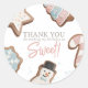 Display your gratitude with this thank you sticker to put on favours featuring watercolor/gouache style Christmas cookies with pink script and vintage style typography.