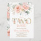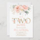 TWO Sweet Blush Pink Floral Gold Second Birthday Invitation