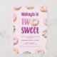 This birthday party invitation features doughnuts and "two sweet" to invite friends and family to celebrate your little one turning 2.