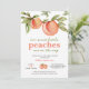 Celebrate your two sweet peaches on the way! Twins baby shower invitation. This design features two sweet peaches hanging from a branch. Along with a lovely combination of modern and rustic fonts. See the entire collection for more matching items!