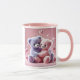 Two teddy cubs that hug each other. mug
