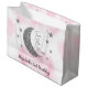 Two the moon! 2nd birthday with silver moon and stars with pink watercolor background