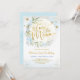 Two the Moon Blue Gold Floral 2nd Birthday Boy Invitation