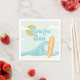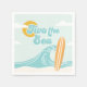 Two the Sea! Surfing Beach 2nd Birthday party napkins with turquoise waves and orange surf board.