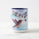 Personalise this Unique "One of a Kind" Hummingbird Mug! It Features an Adorable Hummingbird Sipping Nectar from Beautiful Large Pink & Purple Flowers...on a Purple and Pink Cloud Background!
