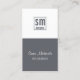 Minimalist design with a grey and white half and half design. A small square contains your initials in small letters and below that is your company name or profession in small type. A generic design for most personal or business name cards.