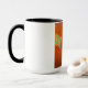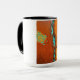 This 15 oz Two Toned Combo Mug is covered with an abstract rustic design in shades of orange, brown, and turquoise.