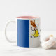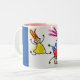 Pink and blue two toned mug with fun kids cartoon design.
