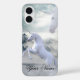 Beautiful picture of a prancing unicorn with the head of an other unicorn in the clouds, is featured on this Apple iPhone 16 case. Customise it by adding a name or text of your choice. Impact resistant, durable hard plastic case. Printed in the USA. Use this good looking case yourself, also makes a great gift too!
