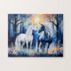 Two Unicorns Standing Together Under Starry Sky Jigsaw Puzzle