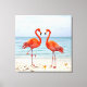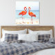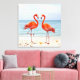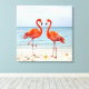 Two Vibrant Pink Flamingos on the Beach Canvas Print