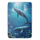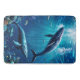 Two whales swimming among tropical fish bath mat