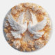 Two White Doves Amidst a Floral Pattern Classic Round Sticker
