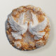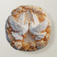Two White Doves Amidst a Floral Pattern Round Cushion