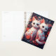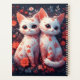 Two adorable white kittens adorned with intricate patterns sit nestled in a lush, glowing forest surrounded by vibrant red and orange autumn leaves. A whimsical fantasy-inspired scene full of charm and warmth.