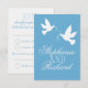 Two white love birds blue formal wedding RSVP Card