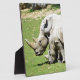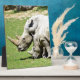 Two white rhinoceros (Ceratotherium simum - Pachyderm - Mammal) on grass seen of profile