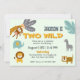Two Wild 2nd Birthday Safari Animals Cute Invitation
