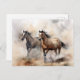 “Two Wild Mustangs ” Dusty Western Watercolour Postcard