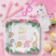 Super sweet safari birthday plates for your "TWO WILD" kiddos second birthday celebration! Cute monkey, striped zebra, jumping lion, sprinkling elephant and curious giraffe join the party :) Light and dark pink jungle flowers are paired against tropical leaves and ferns. Perfect for the baby girl's 2nd birthday!