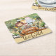 Two Wild Safari Animals Driving Car 2nd Birthday Square Paper Coaster