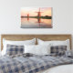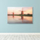 Canvas landscape print of two windmills along a river with reflection in the still water in the sunset light on a summer evening in the Netherlands. Great decoration on your wall!