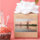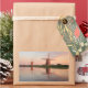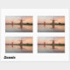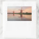 Rectangular photo sticker with two windmills along a river with reflection in the still water in the sunset light on a summer evening in the Netherlands.