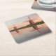 Paper photo coaster with two windmills along a river with reflection in the still water in the sunset light on a summer evening in the Netherlands.
