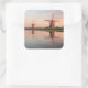 Photo sticker with two windmills along a river with reflection in the still water in the sunset light on a summer evening in the Netherlands.