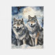 Two Wolves in Winter Fleece Blanket